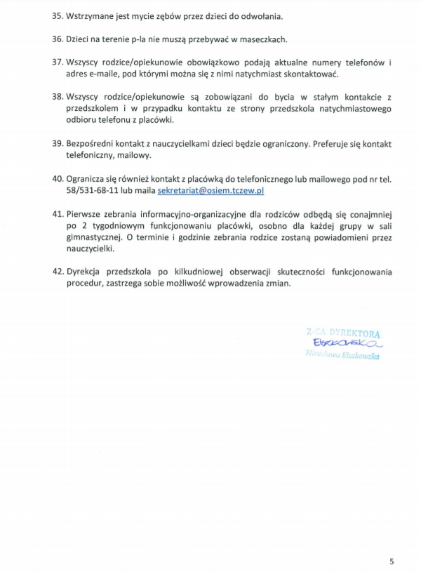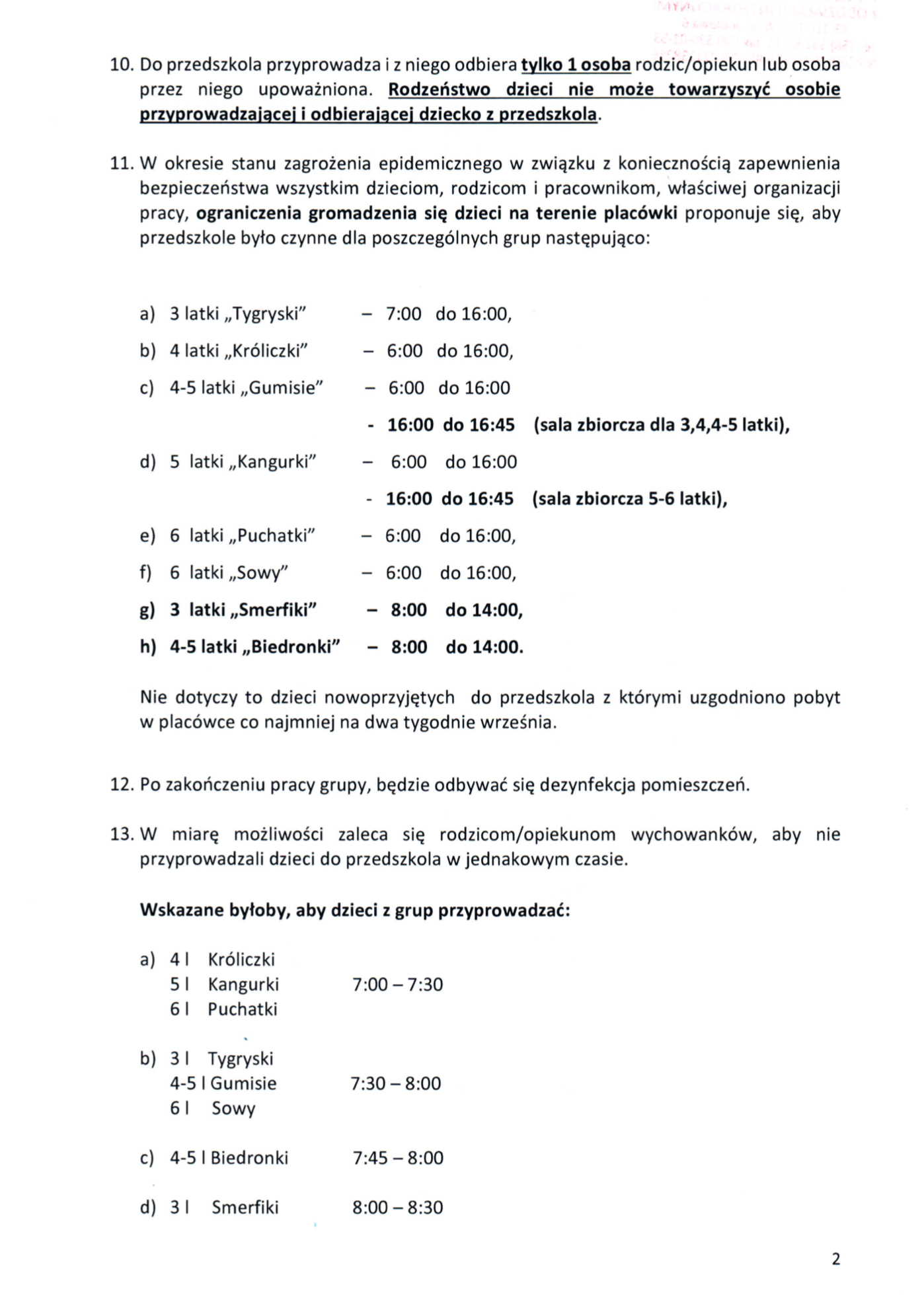 Nowe procedury przyprowadzania i odbierania dziecka z przedszkola.